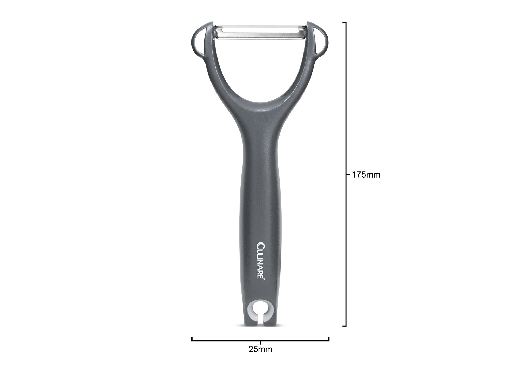 The Culinare Non-Serrated Y-Peeler features a robust, Y-shaped design for efficient peeling of hard-skinned fruits and vegetables. Its sturdy construction ensures a secure, comfortable grip, delivering reliable performance on tough produce like potatoes and butternut.