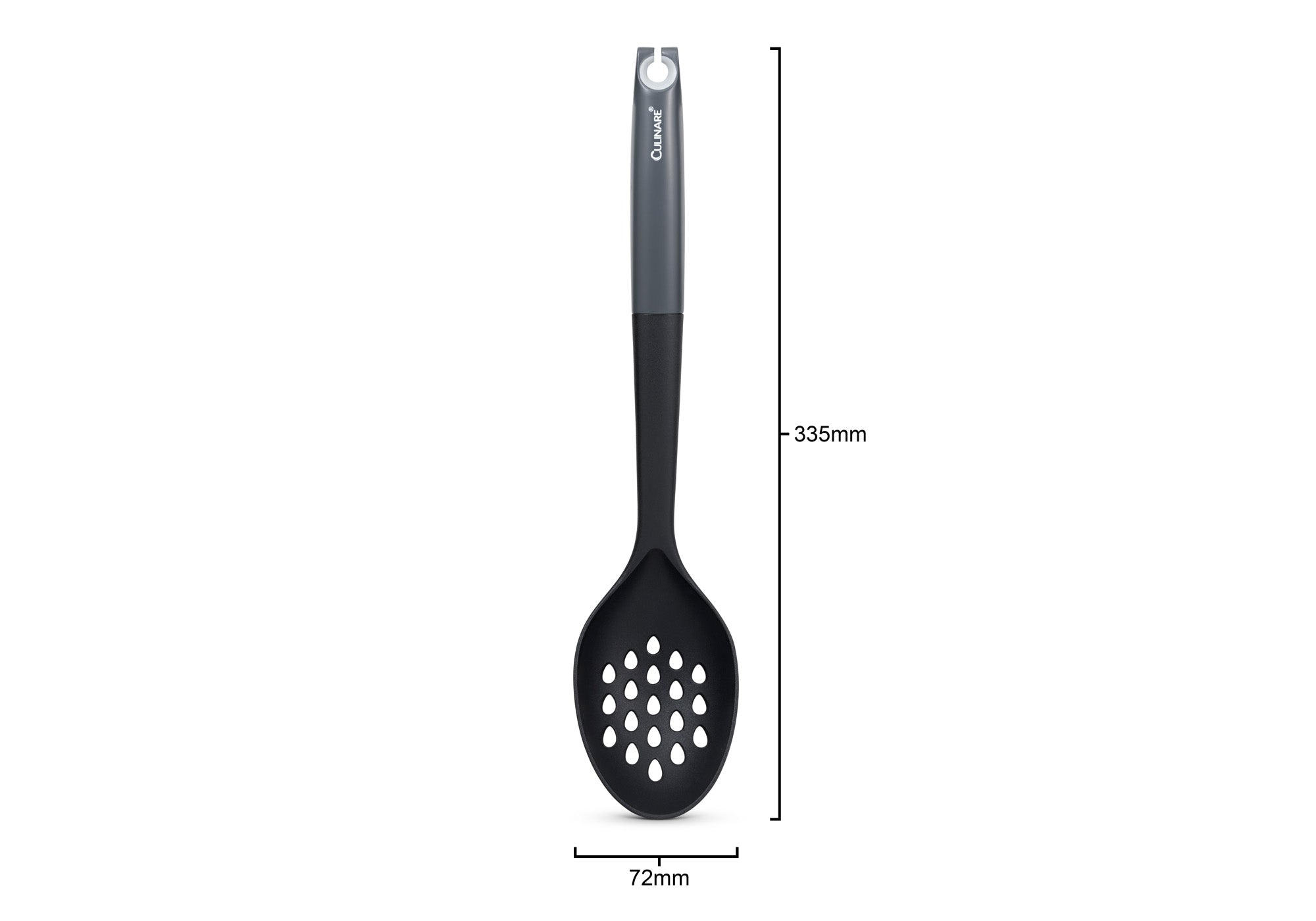 This Slotted Spoon has a durable design which is safe to use with non-stick and ceramic cookware, ensuring no scratches or damage. The slotted head allows for quick and efficient draining while cooking. Heat resistant up to 80°C, it also features a practical hanging hook for easy storage. Dishwasher-safe for convenient cleaning, this spoon is a reliable addition to any kitchen collection.