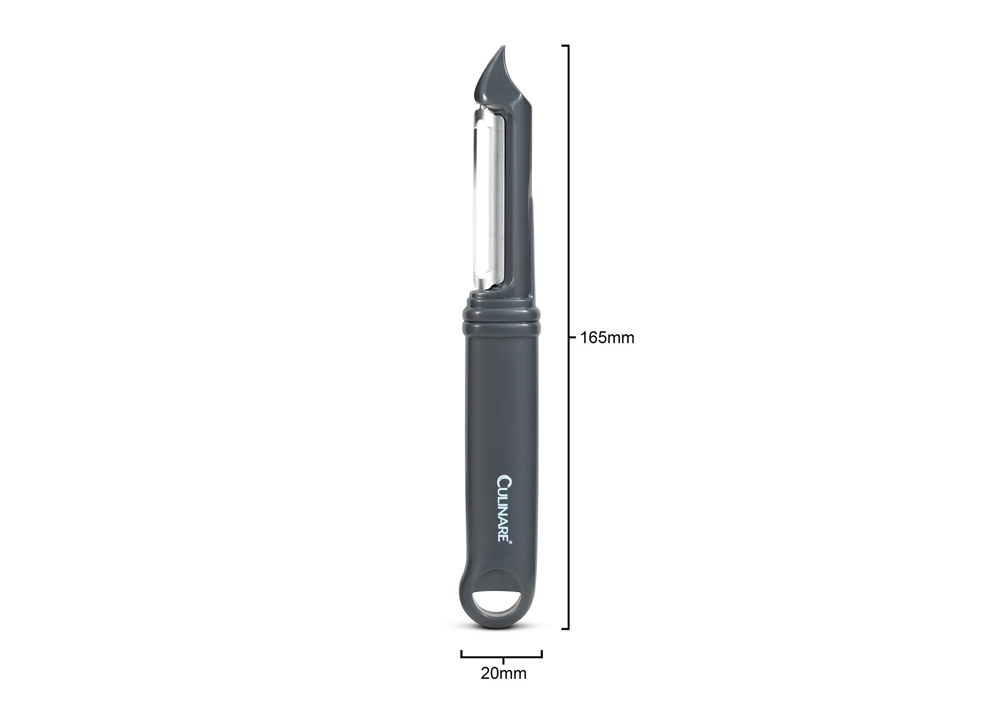 The Culinare Straight Swivel Peeler is designed for efficient and precise peeling. It features a sharp stainless-steel blade that easily handles fruits and vegetables. The swivel action ensures smooth, effortless peeling, while the built-in blemish remover provides an added function for tackling imperfections.